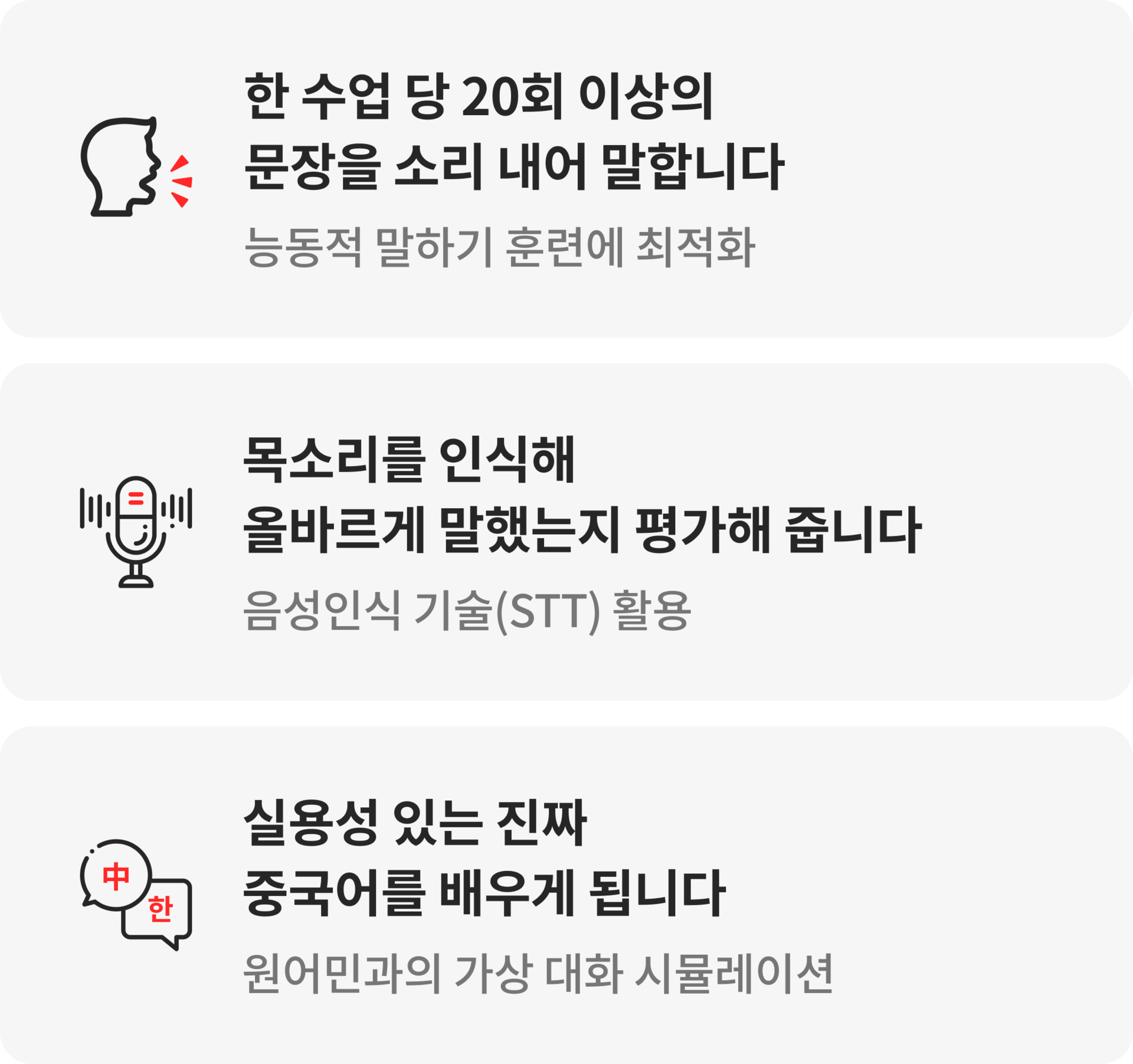 | 발음 피드백도 받을수있어서 좋아요!ㅎㅎ너무 좋아요 중국어 무서워서 시도 안해봤는데 흥미가 생겼어요! | 진달**** | 283 |