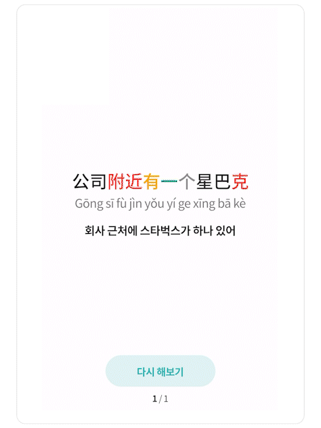 | 발음 피드백도 받을수있어서 좋아요!ㅎㅎ너무 좋아요 중국어 무서워서 시도 안해봤는데 흥미가 생겼어요! | 진달**** | 283 |